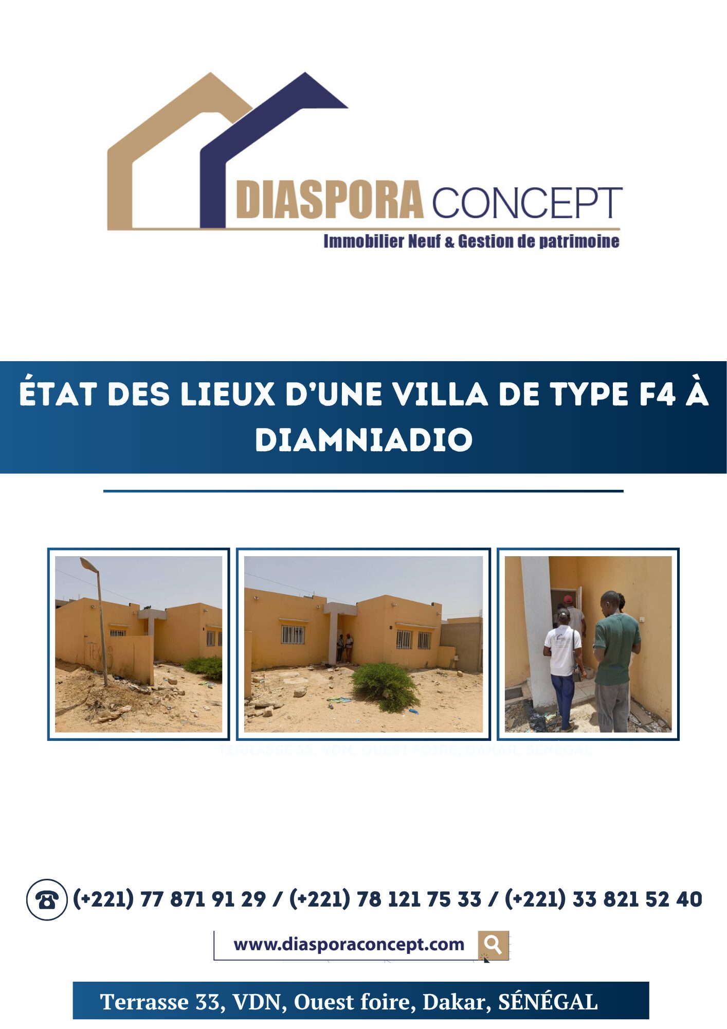 Un client de la diaspora nous a mandaté pour réaliser l’état des lieux de sa villa de 3 chambres + salon à Diamniadio. Lors de notre première visite, nous avons constaté de nombreux manquements : finitions bâclées, défauts multiples… bref, un logement loin d’être habitable. Grâce à l’intervention de notre équipe technique, toutes les réserves ont été signalées et suivies de près. Résultat : les travaux de correction ont été effectués et la villa a finalement été réceptionnée dans de bien meilleures conditions. 👉 À toutes les personnes de la diaspora comme d’ici, qui possèdent des villas à Dakar ou dans les régions, sachez que vous pouvez également faire appel à Diaspora Concept. Nous pouvons vous représenter pour l’état des lieux, le suivi des travaux et veiller à ce que vos biens soient livrés dans les meilleures conditions.